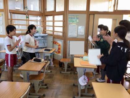 6年生 外国語 公開日 2024/12/03 更新日 2024/12/03 お知らせ 6年生の外国語の授業の様子です。 発表会をしていました。自分が選んだものがどこの国で作られているのか、その国はどんな国なのか、友だちに英語で説明していました。緊張しながらも大きな声で発表したり、友達の発表に温かい拍手をしたりする姿が見られました。