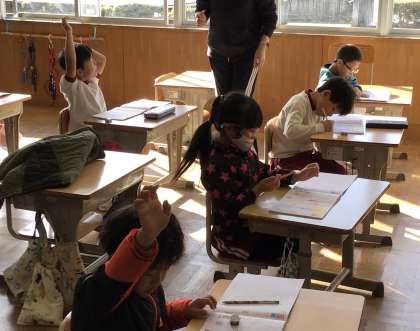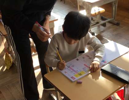 1年生 国語 公開日 2024/12/04 更新日 2024/12/04 お知らせ 1年生の国語の授業の様子です。 「年」という漢字を学習していました。「年」は書き順も難しく、なかなか正しく覚えることができません。お手本を見ながら熱心に練習し、先生に丸をつけてもらっていました。