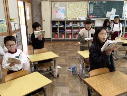 2年生 朝の会 公開日 2024/12/04 更新日 2024/12/04 お知らせ 2年生の朝の会の様子です。 今月の歌「いのちのオーケストラ」を歌っていました。12月に入ったばかりなので、まだ歌った回数は少ないため、歌詞を見て、CDの音を聞きながら一生懸命歌っていました。