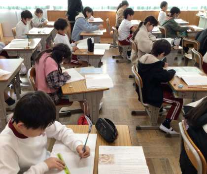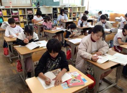 「ごんぎつね」の2場面を読み、内容をノートにまとめていました。教科書に線を引きながら読む姿が見られました。
