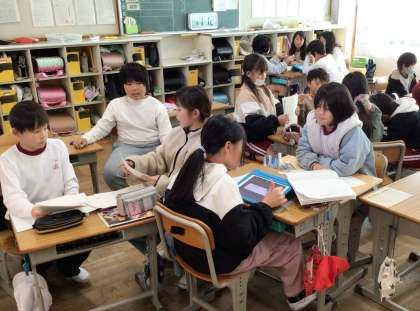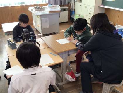 グループで「和と洋新聞」作りの続きをしていました。アンケートを集計し、そこから何がわかるかまとめる姿が見られました。友だちと楽しそうに取り組んでいました。