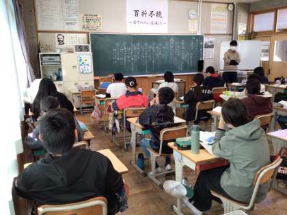 6年生 国語 公開日 2024/12/09 更新日 2024/12/09 お知らせ 6年生の国語「海のいのち」の授業の様子です。 場面分けをしました。その後、どの場面がこの話の山場かを考え、近くの友だちと話し合う姿が見られました。