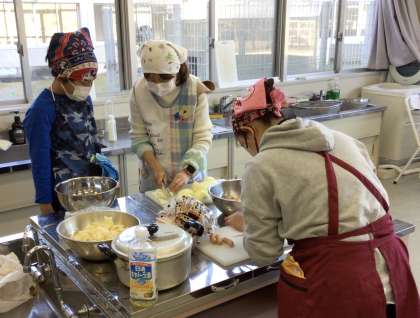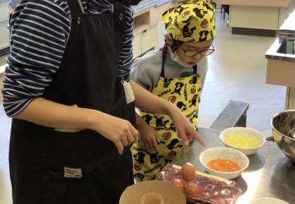 あすくす学級の自立活動で料理をする様子です。