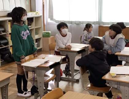 4年生 国語 公開日 2024/12/16 更新日 2024/12/16 お知らせ 4年生の国語「ごんぎつね」の授業の様子です。 最後の、ごんが兵十に撃たれてしまう場面について読み取り、気持ちを考えていました。近くの席の子と話し合ったり、自分の考えを発表したりする姿が見られました。