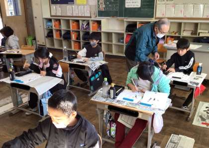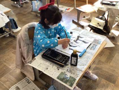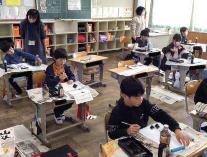 書道家の高木先生に教えていただき、今日は名前を中心に練習しました。一文字一文字お手本を見ながら丁寧に書く姿が見られました。漢字の書き順が間違っているとなかなか上手く書けません。難しい漢字もありますが、自分の名前の書き順は正しく書けるといいですね。