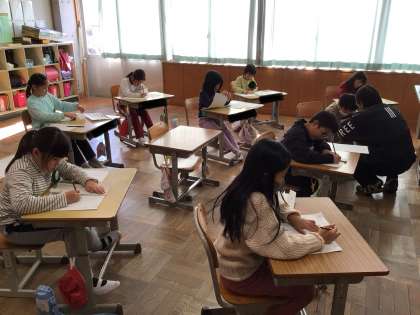 2年生 書き方 公開日 2024/12/17 更新日 2024/12/17 お知らせ 2年生の書き方の授業の様子です。 書き初めの字を練習していました。「夜」「聞」「空」といった漢字や、ひらがなの「す」や「の」が難しそうでした。1画1画お手本を見ながら一生懸命書いてました。