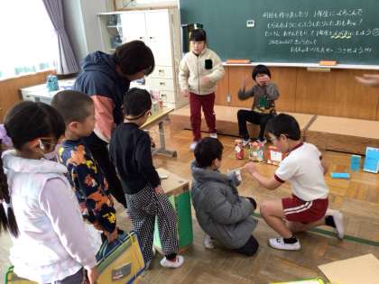 1,2年生「おもちゃまつり」2 公開日 2024/12/19 更新日 2024/12/19 お知らせ 1,2年生の「おもちゃまつり」の様子No.2です。 2年生が1年生に喜んでもらおうと今まで一生懸命作ってきたおもちゃで、1年生が楽しく遊びました。大変なかよく交流する姿が見られ、1年生も2年生も嬉しそうでした。これを経験した1年生が、また来年、次の1年生を楽しませてくれることでしょう。
