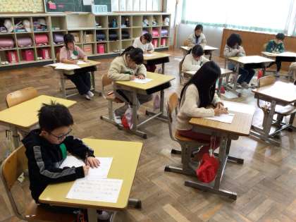 2年生も硬筆です。たくさんの文字を、一文字一文字、大変丁寧に書いていました。