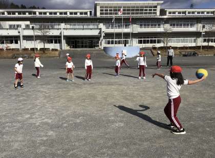 ドッジボールをしていました。相手をねらってボールを投げたり、上手に逃げたりする姿が見られました。終わりのあいさつもしっかりしていました。
