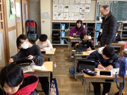 5年生 外国語 公開日 2025/01/08 更新日 2025/01/08 お知らせ 5年生の外国語の授業の様子です。 都道府県を1つ選び、その土地の名物から「おすすめランチセット」を考える活動をしていました。次回、それを伝え合う活動をするようです。どの都道府県にするか、どんなランチセットにするか、大変楽しそうに考える姿が見られました。