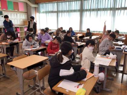 6年生 外国語 公開日 2025/01/08 更新日 2025/01/08 お知らせ 6年生の外国語の授業の様子です。 冬休みの出来事を英語で伝える活動をするために、何をどのように伝えるか考えました。冬休みに行った場所や、食べたもの、したことなどを思い出し、プリントに書いていました。友だちと相談し合ったり、先生に伝え方を聞いたりしながら楽しそうに考えていました。