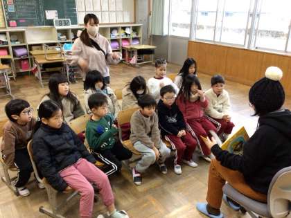 2年生 おはなしでてこい 公開日 2025/01/09 更新日 2025/01/09 お知らせ 2年生の「おはなしでてこい(読み聞かせ)」の様子です。 今日は英語で書かれた絵本を、日本語で解説しながら英語で読んでくださいました。子どもたちは絵も見ながら内容を理解し、集中して話を聞いていました。