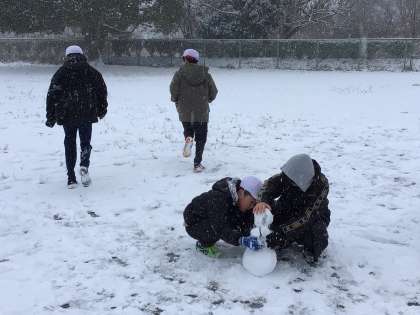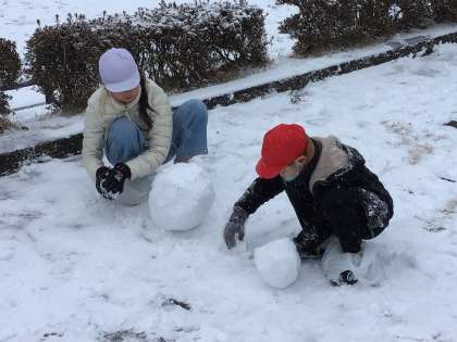 雪がさらさらしていて大きな雪だるまはなかなか作りにくそうでしたが、一生懸命雪を集めて固め、楽しんでいました。