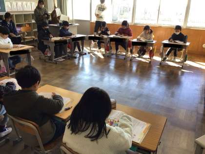 研究授業でした。たくさんの先生が見守る中、「バスの中で」という教材をもとに、親切について考えました。困っているおばあさんに席を譲るか迷う登場人物の気持ちを真剣に考え、「はずかしい」「ゆれてたおれそうで心配」「すごく困っている」「あまりにもかわいそうで助けたい」「自分が立つしかない」等の意見が出ていました。最後の振り返りでは、「自分(自分の迷う心)と向き合って行動したい」「自分と関係ない人も助けたい」といった今後の自分についての考えを書くことができました。