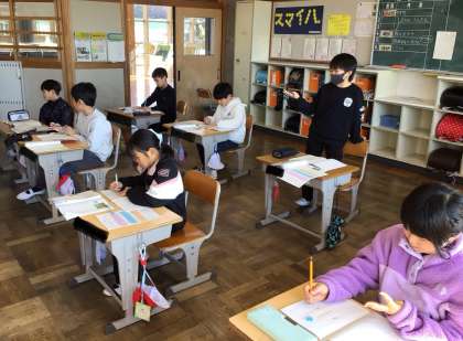 3年生 国語 公開日 2025/01/21 更新日 2025/01/21 お知らせ 3年生の国語「俳句に親しもう」の授業の様子です。 季語を入れながら俳句をつくっていました。指を折り曲げ、「五七五」になるか数えながら考える姿が見られました。