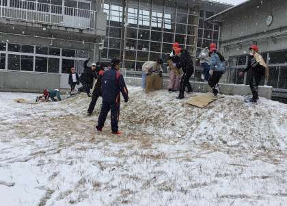 4年生 雪遊び 公開日 2025/02/05 更新日 2025/02/05 お知らせ 4年生の雪遊びの様子です。 中庭の斜面でダンボールを使って滑ったり、雪を固めたりしていました。元気いっぱい楽しそうに活動していました。