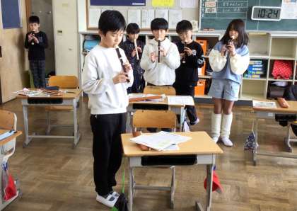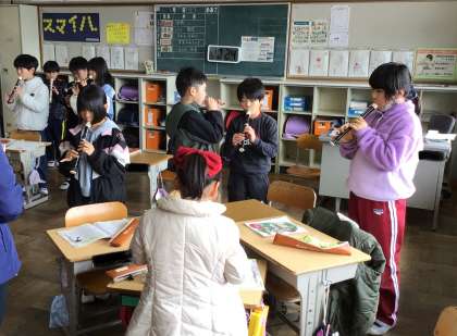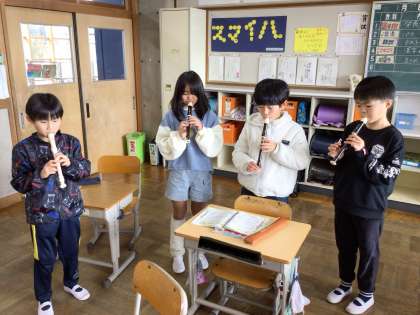 3年生 音楽 公開日 2025/02/10 更新日 2025/02/10 お知らせ 3年生の音楽の授業の様子です。 「パフ」という曲をリコーダーで練習していました。上のパートと下のパートに分かれて熱心に練習していました。今週の授業参観の最後に全員で発表するようです。楽しみです。