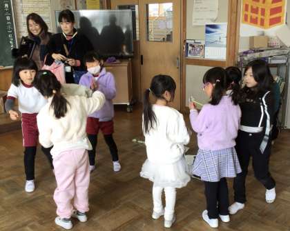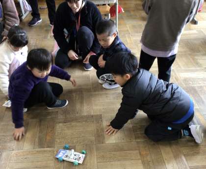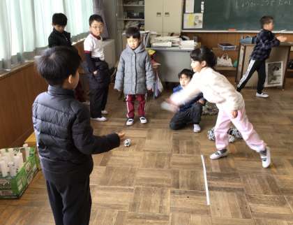 1年生 石畳こども園の子どもたちとの交流 公開日 2025/02/12 更新日 2025/02/12 お知らせ 1年生が石畳こども園の年長組の子どもたちと交流しました。 入学説明会では欠席が多くてできなかった手作りのゲームでやっと一緒に遊ぶことができました。遊び方を説明し、たくさん遊んでもらって大変嬉しそうでした。上手にできると拍手をする姿も見られました。新1年生も笑顔で大変喜んでいました。4月に入学してくるのが楽しみですね。