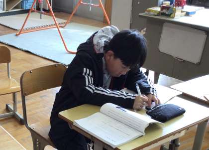 個別に教えてもらいながら、自分のペースで学習していました。友だちが頑張る様子を見て刺激を受け、自分も集中して頑張ろうとする姿も見られました。