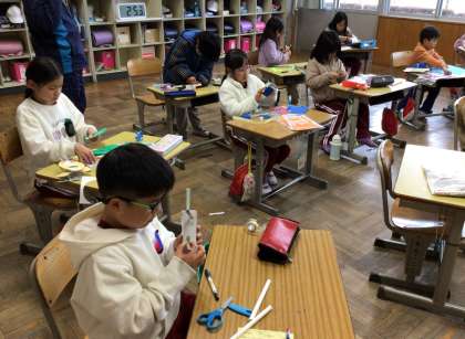 2年生の図工「パタパタストロー」の授業の様子です。
