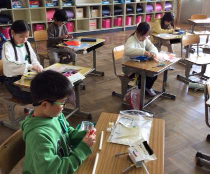 「パタパタストロー」を完成させた後、自分や友達の作ったもので遊んでいました。最後の仕上げを頑張る姿や、できた作品で楽しそうに遊ぶ姿が見られました。