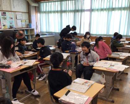 5年生 外国語 公開日 2025/02/25 更新日 2025/02/25 お知らせ 5年生の外国語「Who is your hero?」の授業の様子です。 あこがれの人をたずね合う活動のために、まず、自分が誰のどんな行動にあこがれるかを書いていました。教科書を見たり、ブライアン先生に聞いたりしながら英語で書いていました。誰にあこがれるのか友達に話しながら盛り上がる姿も見られました。