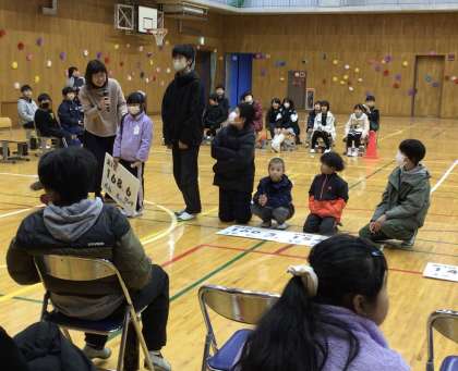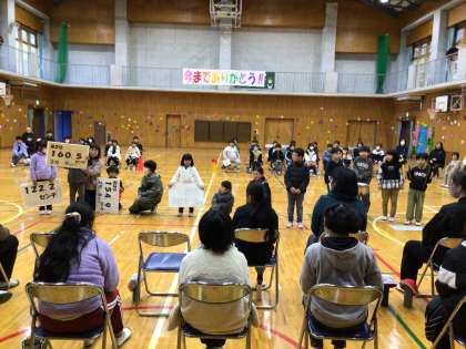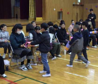 卒業を祝う会 3 公開日 2025/03/05 更新日 2025/03/05 お知らせ 2年生の次は、1年生が企画した身長クイズと似顔絵のプレゼントでした。 1年生から身長が伸びた6年生のベスト5を発表し、1年生の頃の身長が同じくらいの1年生と並びました。こんなに身長が伸びたことに驚く姿が見られました。その後、1年生が描いた似顔絵をプレゼントしました。6年生が笑顔で受け取っていました。