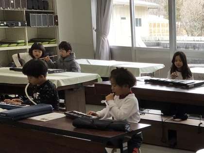 「こいぬのマーチ」を鍵盤ハーモニカと鉄琴で演奏していました。鉄琴は数が少ないため、順番に交代して演奏していました。練習する中で少しずつ上手になり、嬉しそうに演奏する姿が見られました。