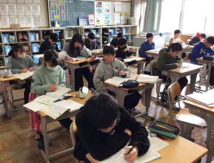 5年生 算数 公開日 2025/03/12 更新日 2025/03/12 お知らせ 5年生の算数「変わり方」の授業の様子です。 プリンの数と代金の関係を○や△を使って式で表し、プリンの数と代金の変わり方を表にかいて調べていました。そして、プリンを箱に入れる場合と入れない場合の表を作り、比例しているのはどちらか考えます。複雑な問題ですが、表で調べることで理解を深めていきます。