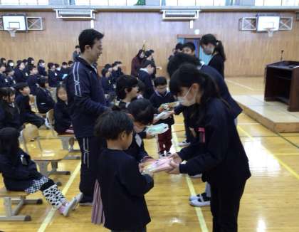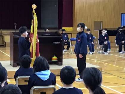 引き継ぎ式 公開日 2025/03/13 更新日 2025/03/13 お知らせ 6年生から在校生への引き継ぎ式がありました。 6年生の代表が、5年生へのメッセージとして、この一年学校のリーダーとして頑張ってきたこと、行ってきたことを伝え、校旗もしっかり引き継ぎました。その後、在校生と教職員にプレゼントを贈呈してくれました。5年生が引き継いだバトンを大切にし、来年度、新しいリーダーとして、石畳小学校をさらによりよい学校にしていってほしいと期待しています。