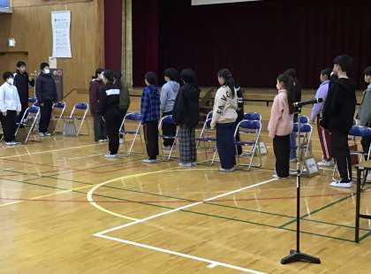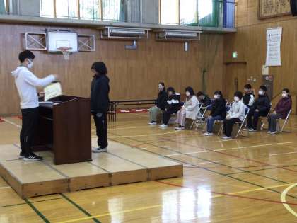 6年生 卒業式練習 公開日 2025/03/18 更新日 2025/03/18 お知らせ 6年生の卒業式の練習の様子です。 いよいよ明日は卒業式。最後の練習でした。式全体の流れを確認し、呼びかけや歌を練習しました。欠席した子もいましたが、その子の分まで呼びかけを頑張る姿も見られました。明日、子どもたちは緊張すると思いますが、きっと気持ちのこもった良い卒業式になると、練習を見ていて思いました。
