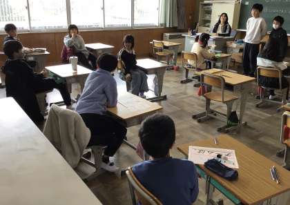 子どもたちが考えたお楽しみ会の遊びの内容やルールについて、クラスの皆に説明していました。分からないことは質問し、わくわくしながら聞く姿が見られました。