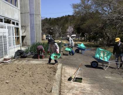 たくさんの雑草を取り、整備して下さったおかげで、花壇が大変きれいになり、畑もいつでも野菜を育て始められる状態になりました。ボランティアの皆様、長時間に渡り、ありがとうございました。