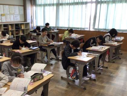 5年生 算数 公開日 2025/04/14 更新日 2025/04/14 お知らせ 5年生の算数の授業の様子です。 小数点の位置がどのように変わっていくのか学び、練習問題に取り組んでいました。ノートの書き方なども教えてもらいながら、集中して問題を解いていました。