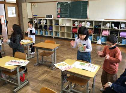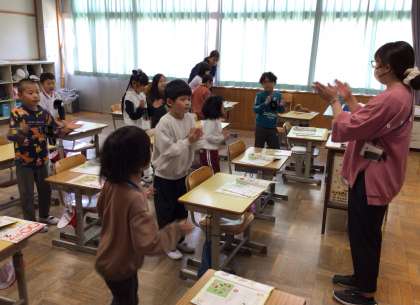 2年生 音楽 公開日 2025/04/14 更新日 2025/04/14 お知らせ 2年生の音楽の授業の様子です。 世界のあそびうたを楽しんでいました。「小犬のビンゴ」では、BINGOの一文字一文字の発音に合わせて手拍子を打ちながら大変楽しそうに歌っていました。