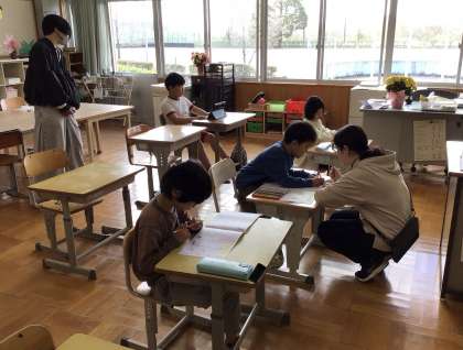 あすくす 公開日 2025/04/15 更新日 2025/04/15 お知らせ あすくす学級の授業の様子です。 国語の学習をしていました。それぞれのペースで、じっくり学習していました。黒板には一人一人の1日の予定が示され、見通しをもって学習できるようになっています。