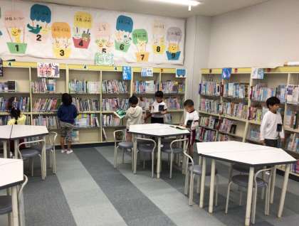 本の背表紙に貼られた分類番号の秘密を知り、驚く姿も見られました。その後、自分の好きな本を選んで借り、大変嬉しそうでした。