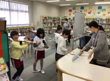 2年生は、図書室で、司書の先生に図書室のルールや本の仲間分けについて学びました。
