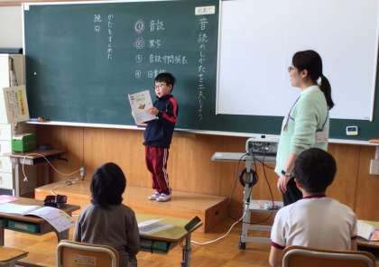 あすくす 国語 公開日 2025/04/18 更新日 2025/04/18 お知らせ あすくす学級の国語の授業の様子です。 3年生と5年生が音読の工夫をし、発表していました。「がんばってね」と励ましたり、拍手をしたりする姿も見られました。