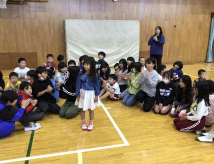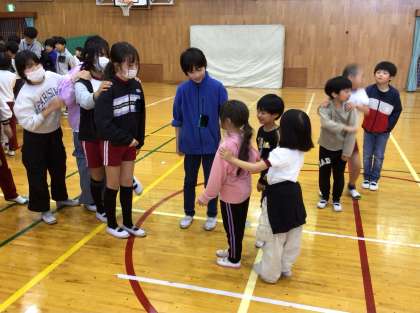 入学を祝う会 2 公開日 2025/04/23 更新日 2025/04/23 お知らせ 「じゃんけん列車」で遊ぶ様子です。 1年生の楽しそうな笑顔と、それを見守る2〜6年生の優しい笑顔が印象的でした。最後の方まで勝ち残った子には皆で拍手をしました。