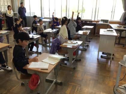 4年生 授業参観 公開日 2025/04/26 更新日 2025/04/26 お知らせ 4年生の授業参観の様子です。 算数の授業で、変わり方がよくわかるグラフとして、「おれ線グラフ」について学びました。友達の考えを聞き、ハンドサインで反応する姿が見られました。