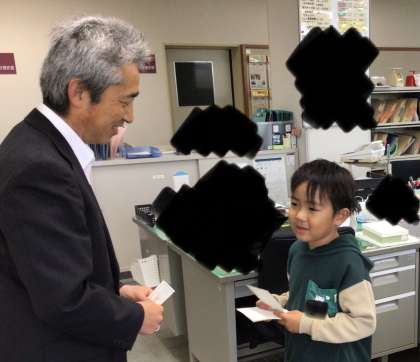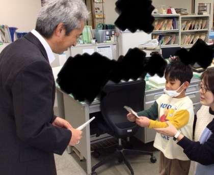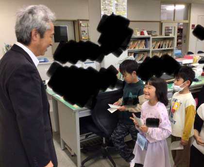 あすくす学級の1年生が校長室と職員室に自己紹介に来ました。