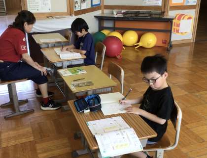 1年生は「なんばんめ」2年生は「ひき算のひっ算」5年生は「小数」の学習をしていました。1年生はまず、右と左がどちらかを覚えることからスタートしていました。