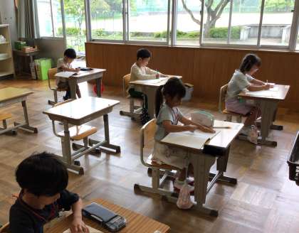 1年生 国語 公開日 2025/05/23 更新日 2025/05/23 お知らせ 1年生の国語の授業の様子です。 「わ」の書き方を学び、練習していました。書き終わると「上手にかけた!」「二重丸もらえそう!」などといった声も聞かれ、それぞれが1つ1つの文字を書くことに真剣であることが伝わってきました。文字の練習の後は、お話「とん こと とん」の音読をみんなの前で発表する姿も見られました。