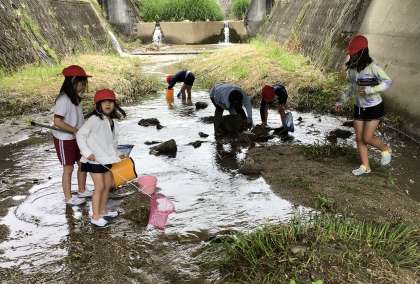 2,4年 川の生き物探し 2 公開日 2025/05/26 更新日 2025/05/26 お知らせ 石をどかしてカニを探したり、足で魚をタモの中に追い込んだり、川の中を覗き込んだりしながら、夢中になって生き物を探していました。みんな楽しそうでした。川の周りの草も地域の方が刈ってくださっています。地域の方、ボランティアの方のおかげでこういった活動が安全に行えます。ありがとうございました。