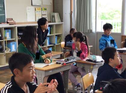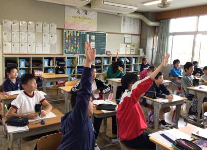 自分が調べる災害を決め、構成を考える授業でした。どんな災害があるか発表していました。