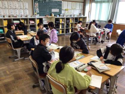 5年生 国語 公開日 2025/05/27 更新日 2025/05/27 お知らせ 5年生の国語「いにしえの言葉に親しもう」の授業の様子です。 平家物語や徒然草の始まりの部分をノートに書いたり、暗唱したりしていました。難しい言葉がたくさん出てくるので苦労していましたが、何回も繰り返し声に出して一生懸命暗唱していました。
