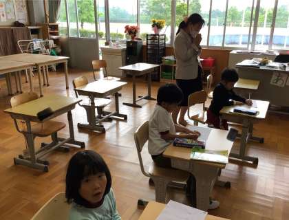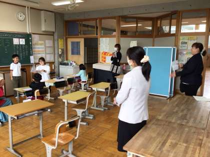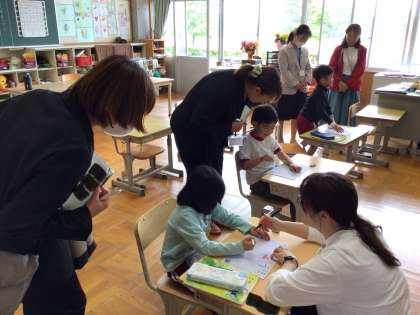 あすくす 幼稚園・こども園の先生の授業参観 公開日 2025/05/27 更新日 2025/05/27 お知らせ 園の先生に自己紹介をしたり、新しい文字を書いたりしました。園の先生に「じょうず!」と褒められて、手を叩いて大喜びする姿も見られました。