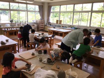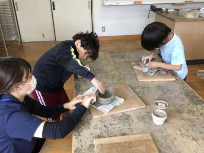 2年生 陶芸 公開日 2025/06/02 更新日 2025/06/02 お知らせ 2年生の陶芸の様子です。 2年生は素焼きの鉢を作ります。講師の宮島さんに、粘土を紐状にして積み重ねせていく方法を学びました。紐状にした粘土と粘土を指でこすって繋げ、高くしていきます。どの子も大変真剣な表情で作っていました。 今年度は、元陶芸家の宮島さんに、各学年、様々な技法を教えていただき、作品を作ることができました。宮島さん、ありがとうございました。