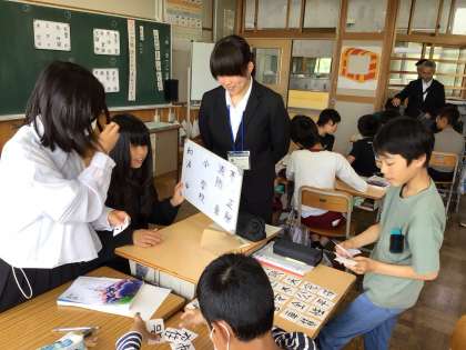 三文字熟語の秘密を見つける授業でした。子どもたちは、丹羽先生が用意した漢字のカードでたくさんの熟語を作り、それを仲間分けしていくことで、三文字熟語の構成を学んでいきました。